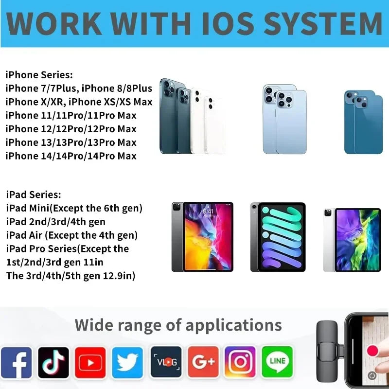 Capture crystal-clear audio anytime, anywhere. This compact wireless microphone is perfect for content creators, vloggers, and live streamers. Simply plug and play — no app or Bluetooth required. Compatible with iPhones (Lightning port), it’s ideal for interviews, reels, and professional-quality sound on the go.